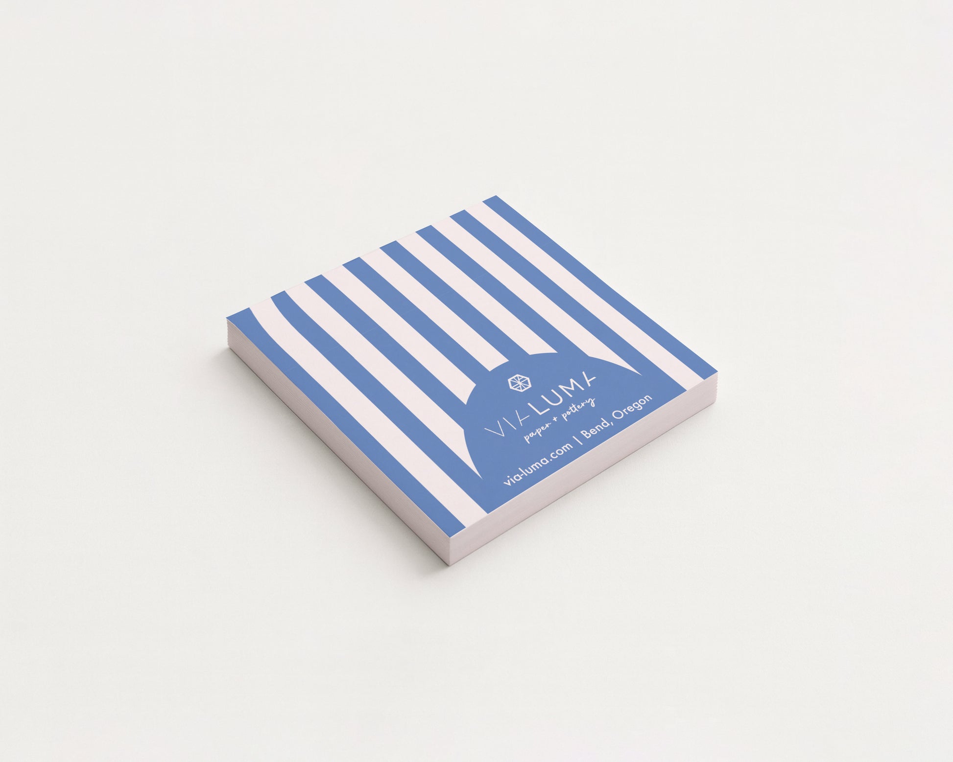 - Back of notepad printed with blue stripe pattern