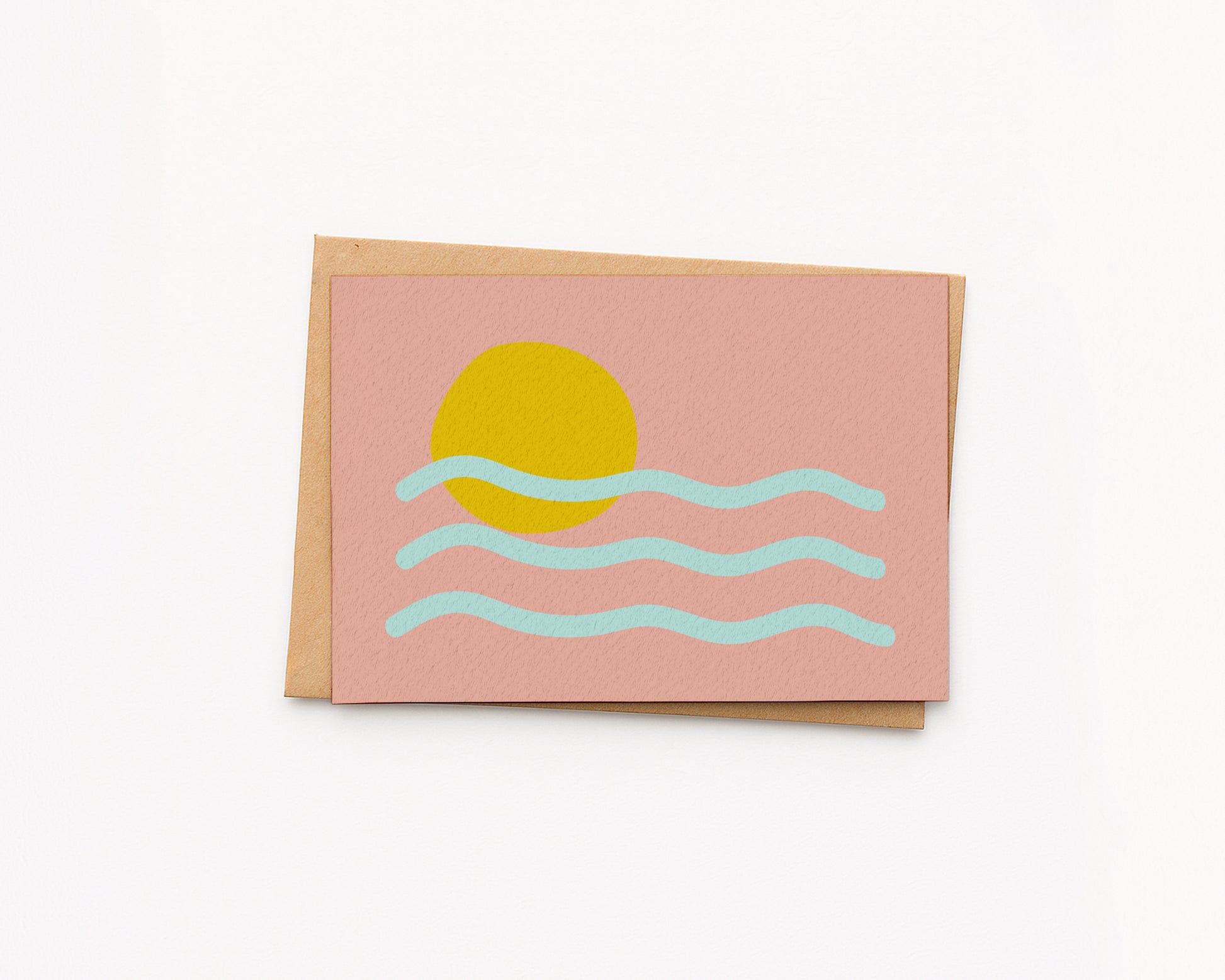 Sunset Mini Card Set of 6 illustrated with sunset and wave design. Perfect little note or gift card for anyone and everyone!