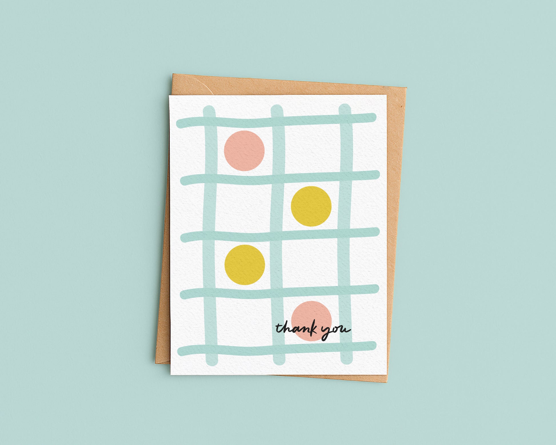 Thanks you card with grid and dot illustration. Perfect thank you card for anyone and everyone!