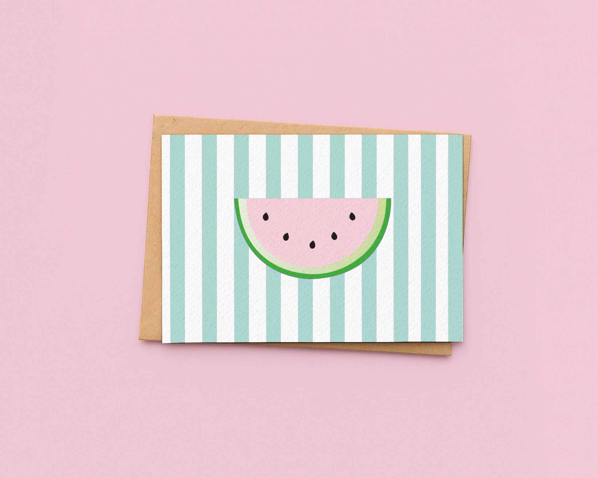 Watermelon Mini Card Set of 6 illustrated with watermelon and stripe design. Perfect little note or gift card for anyone and everyone!