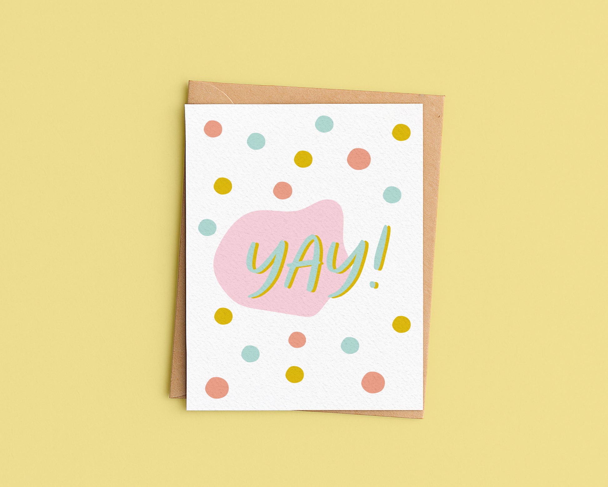 Yay! card, the perfect gender neutral congratulations and celebration card. Great to tuck in with a baby shower gift or a cute baby card to welcome a new baby, for graduation's, new jobs, or any of life's big moments!